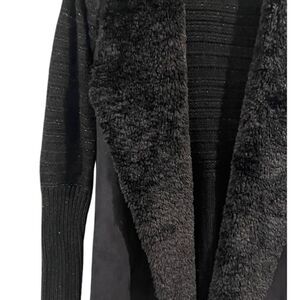 WestPort metallic Black Faux Fur Cardigan Size XS