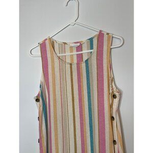 Westbound 100% Linen Multi Color Stripe Sleeveless Midi Shift Dress Size Medium