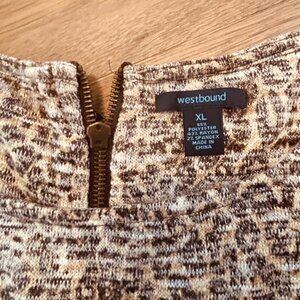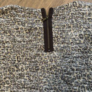 Super cute light weight Westbound animal print 3/4 sleeve sweater in size XL. This sweater has a back zipper detail and is made from polyester, and rayon.
