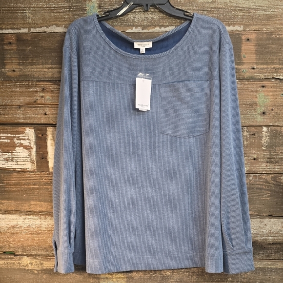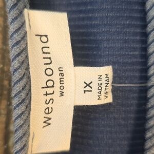 Westbound Blue Ribbed Knit Top, Plus Size 1X, NWT