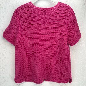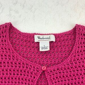 Westbound Bright Pink Crochet Open-Front Cardigan 100% Cotton Boho Style Size L