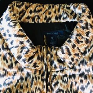 Westbound Cheetah Puffer vest brand new without tags! In perfect condition. Size XL. Beautiful bronze and black leopard design on outside, inside is solid black. Has front pockets. Zipper works perfectly!