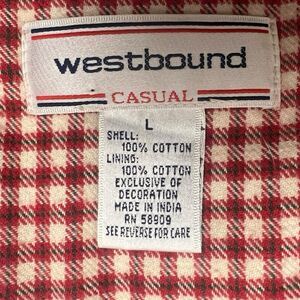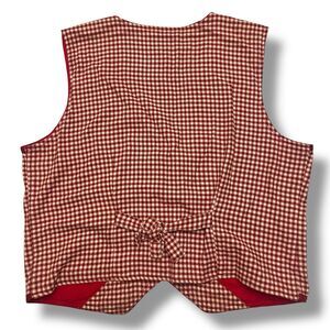 Westbound Christmas Vest LG Santa Red Check Embroidered Tie Back Patch Vintage. Condition is Pre-owned - Good. Shipped with USPS Ground Advantage.