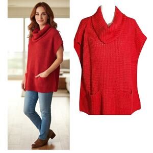Westbound Cowl Neck Sweater Women's Size M Red Pullover Short Sleeve Pockets