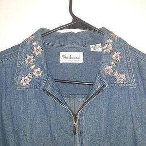 Westbound Denim Shacket Shirt Womens L Blue Western Workwear Full Zip Floral