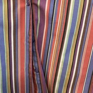 Very cool design - vertical stripes, hidden front button up - Wrinkle Free, Cotton and Polyester combo.