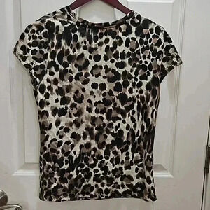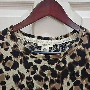 Westbound Leopard Print Twist Knot Blouse Petite Sz Sm