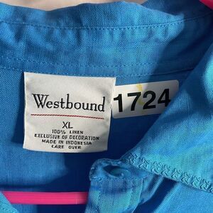 Westbound Top Womens XL Blue 100% Linen Button Up Tunic Blouse.