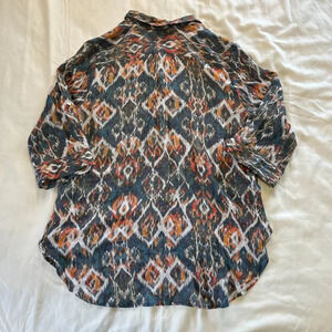 Westbound Multicolor Geometric Pattern 3/4 Sleeve Button Up Blouse | Size XL