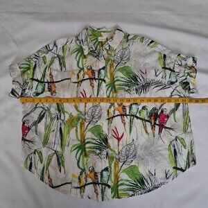 Westbound Petites Tropical Parrot Print Button-Up Short Sleeve Shirt Size PS
