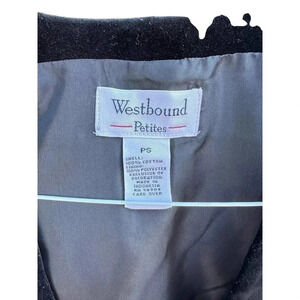 Westbound Petites Women's Black Christmas Cute Snowman Vest Size Petite Small Good Condition Please view all pictures for additional item details and conditions. Features: Brand: Westbound Petites Type: Vest Size: PS Color: Black Material: 100% Cotton Made In Indonesia Sleeveless Front Embroidered Button Front Tie Back Velour fabric Sleeveless design Open front Offers are always welcome!
