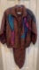 • Design: Features bold, abstract, colorful appliqué designs in neon pink, bright blue, teal, and purple on both the front and back of the jacket. The shoulders are padded and accented with a solid dark grey/black.