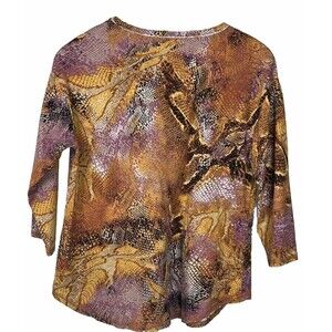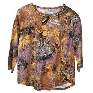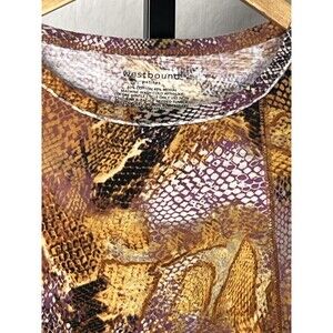 Westbound Top Snakeskin Print T Shirt Long Back Gold Purple Petite Small PS Rock