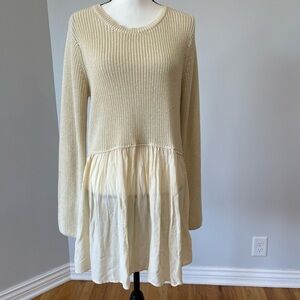 Westbound Tunic Blouse mixed material size XL neutral cottage costal work boots