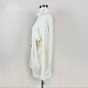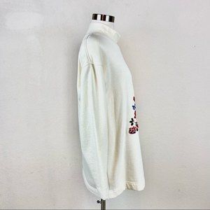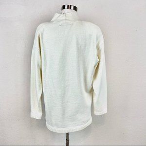 Cream colored high neck sweatshirt by Westbound in a size large. Colorful embroidered Christmas tree detail. Removable shoulder pads. Great pre owned condition.