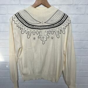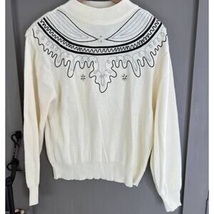 Westbound Vintage Holiday New Years Christmas Cream Beaded Sweater-sz M