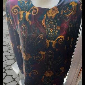 Westbound Vintage Print Multicolor Button Front Long Sleeve Top Blouse Size 14
