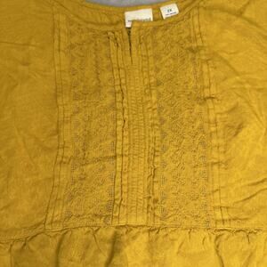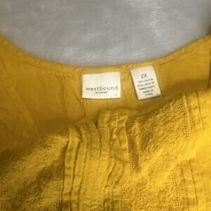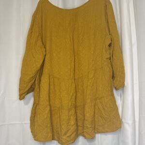 Westbound Woman Blouse Shirt Women's 2X Tiered Mustard Yellow 3/4 Sleeve Flowy