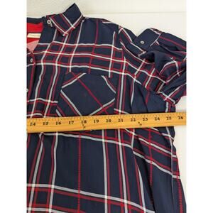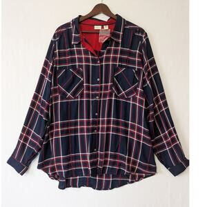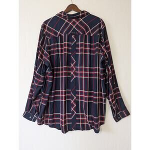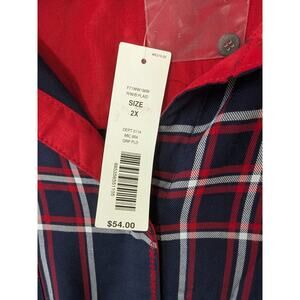 Westbound Woman Navy Red Plaid Button Up Shirt Size 2X Long Sleeves Office New