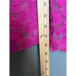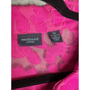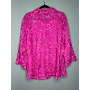 Westbound Woman Plus 3X Hot Pink Sheer Lace 3/4 Sleeve Button-Up Blouse