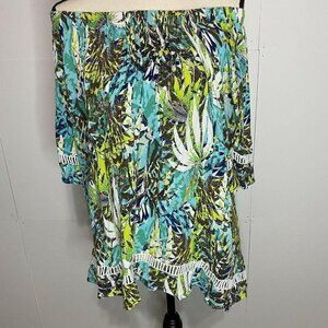 Westbound Woman Plus Sz 2X Tropical Off Shoulder Blouse Top