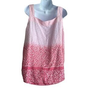 Westbound Women Linen Blend Top XL Ombre Pink Square Neck Flowy Boho Festival