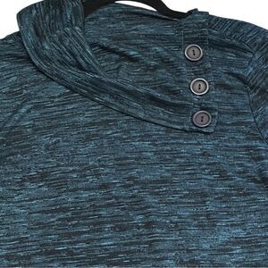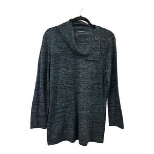 Westbound Asymmetrical Button Neck Sweater, Large blue Green & Black Made USA