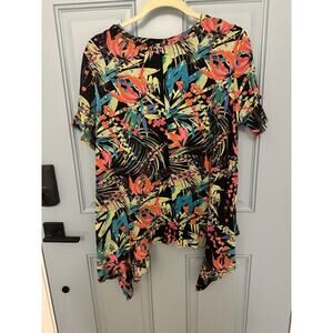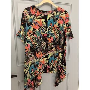 Westbound Womens Black Short Sleeve Blouse Top Tunic Multicolor Tropical Y2K XS