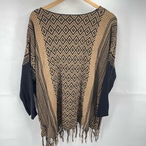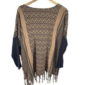 Westbound Womens Poncho Sweater Tassel Pullover Acrylic Blend Black Beige XL