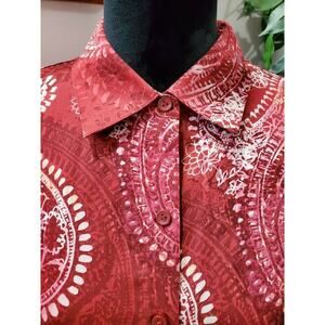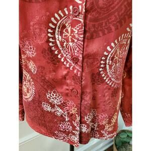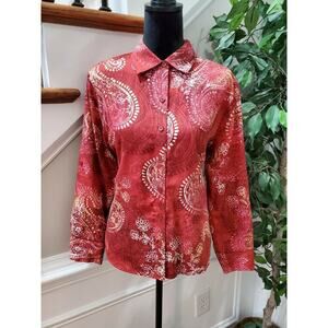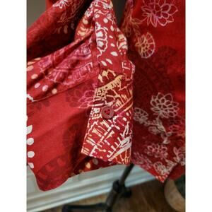 Westbound Women's Red Floral Cotton Long Sleeve Collared Button Down Shirt PL