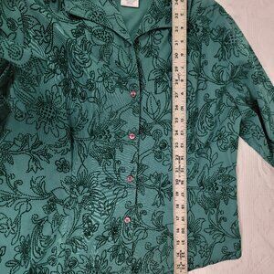 Westbound Y2K women's jacket button up green with black velvet stippling Large