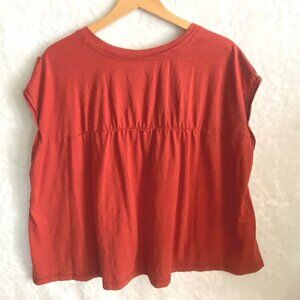 Westbound woman wide cute v-neck t-shirt tee gathered back size 1X rust boxy