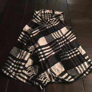 This black and white wrap is from Westbound Petites. This item will be a prefect addition during the colder weather. It is made out of 74% polyester, 12% acrylic, 12% wool, 1% nylon and 1% rayon. The size is PS. Even though this wrap has been gently worn, it is in great condition.