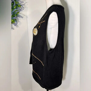Westbound,XL, button front cardigan vest w/beading sequent, gemstones ornaments