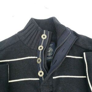 Beautiful Westbury Henley Sweater from Germany. Men's size large. New with out tags. Navy blue with black blended yarn. Bold logo buttons with zip neckline mock collar. No signs of wear. Big bold button still attached to inside sweater. No rips, holes, or stains, No pills or fadding. Comes from smoke free environment.