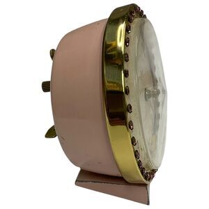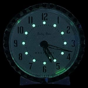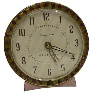 Vintage Westclox Baby Ben Clock Hers Pink Rhinestones Gold Tone Wind Up Alarm UV reactive Clock Face 61-Y