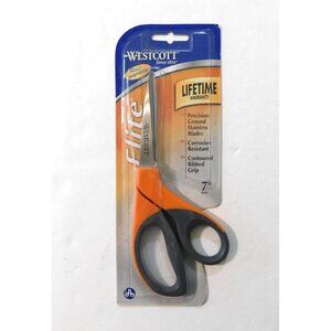 Designed for precision cutting, these Westcott 7-inch bent scissors feature stainless steel blades and ergonomic handles for comfort. A reliable tool for various tasks.