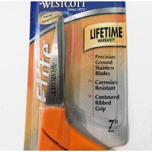 Westcott Elite Scissors 7" Bent Precision Stainless Blades Contoured Ribbed Grip