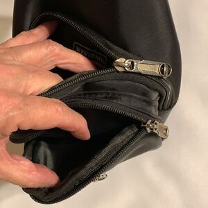 Westend black sling bag with adjustable strap 48”. Two zipper pocket closures with one inside zipper pocket and one front side zipper pocket. NWOT & Smoke free/pet free home