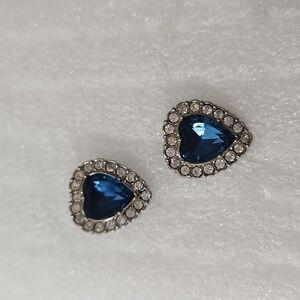 vintage never worn AVON heart shaped blue clip on rhinestone earrings. These beautiful sparkling rhinestones are securely set in a silvertone setting and have so much BLING! it didn't come to you in the original box but it never been worn!