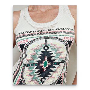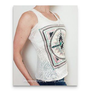 Western Aztec Tank Top Semi Sheer Burnout Graphic Print Tank Top