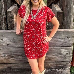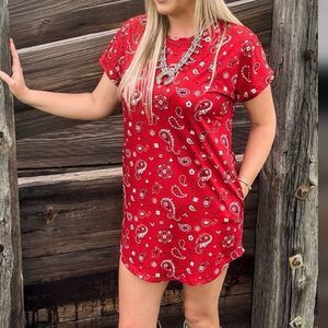 Be the ultimate 'Bandana Babe' in this cute and fun red dress. Perfect for dressing up or down, its comfy and stretchy butter soft fabric will keep you looking stylish and feeling comfortable all day long. And the best part? It even has pockets! Talk about practical (and fashionable) convenience!
