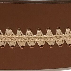 Western Belt Brown Beige Leather Adjustable Hook Eye Embroidered 36-40. The brass plate can be removed to monogram/engrave. Removable with brass screws on back side.