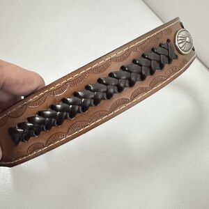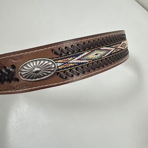 Western Belt Brown Man Made Concho Tooled Aztec Design Westerncore Cowboy 36