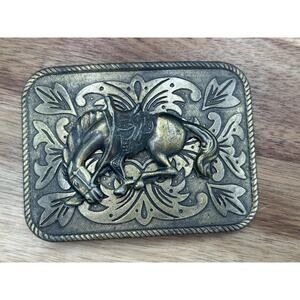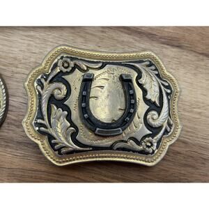 Western Belt Buckles Lot of 3 Cowboy Rodeo Horse Horseshoe Boot Metal Mens Brass