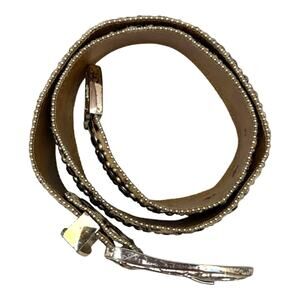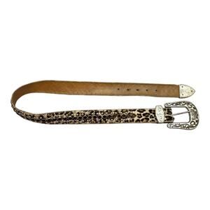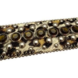 Western Belt Leopard Calf Hair Studded Silver Amber Small