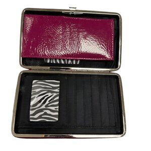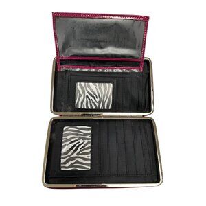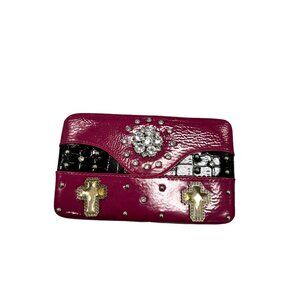 Stylish and functional, this Western Bling wallet features a vibrant fuchsia exterior with cross embellishments and a zebra print interior with multiple card slots.