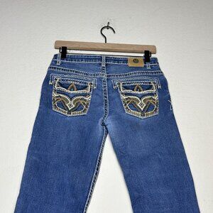 Western Blue Denim Jean Pant Women 30 Blue Embroidered Indie Rock Riding Bootcut