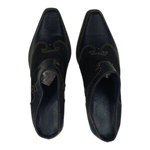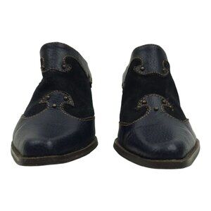 Western Blue Leather Suede Mules Boot Style Clogs Sz 6 Brass Studs Rodeo Slip On