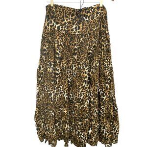 Western Boho Chic Cowgirl Multi Tiered Leopard Long Skirt Elastic Waist 12 VTG